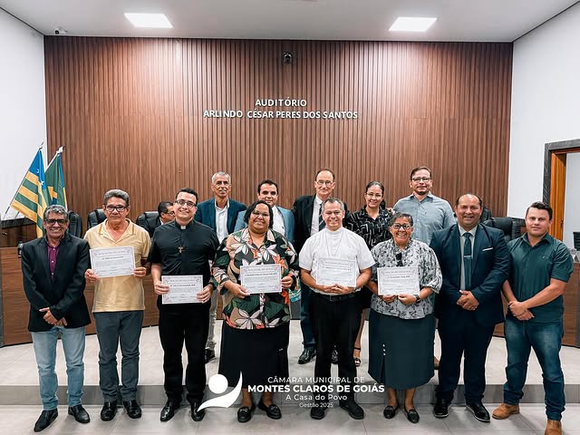 Nesta segunda-feira (10), a Câmara Municipal de Montes Claros de Goiás realizou uma Moção de Aplausos em homenagem às autoridades religiosas do nosso município. ✨